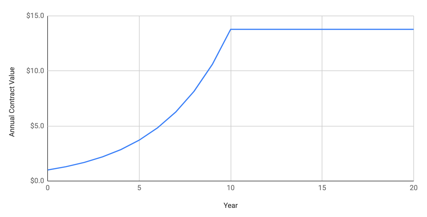 - Imagine we acquire a cohort of customers who pay an annual amount growing or contracting at some constant yearly rate, which represents our revenue retention