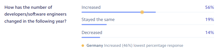 Despite the number of developers increasing year-over-year at most companies, developers working on the right things can accelerate a company’s move into new markets or product areas and help companies differentiate themselves at disproportionate rates. This underscores the most important point about developers as force-multipliers: It’s not just how many devs companies have; it’s also how they’re being leveraged — The Developer Coefficient 2018, Stripe