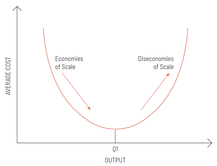 Diseconomies of scale are where unit costs (the costs of producing an additional unit of output) increase rather than decrease with scale. Here, it’s better to cut back or lower output, rather than maximize it. Despite many advances, these occur more often than we’d like to admit in modern software development.